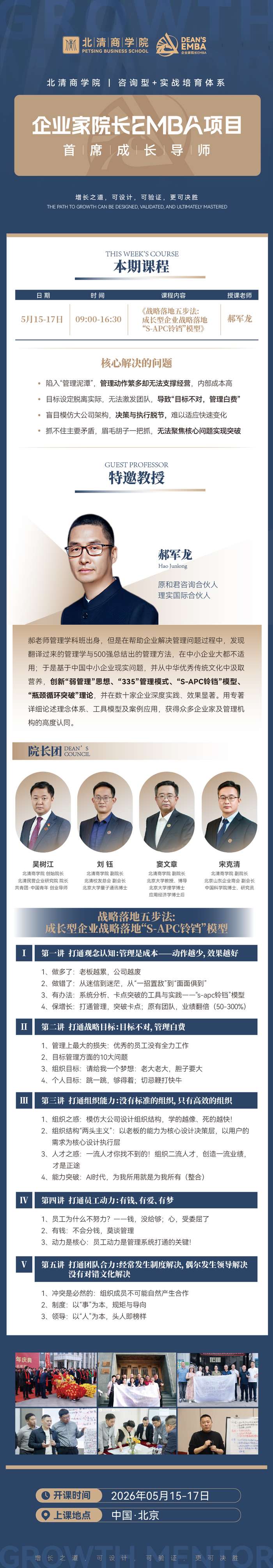 北清商学院 | 郝军龙教授 | 企业家院长EMBA | 战略落地五步法S-APC | 5月15-17日