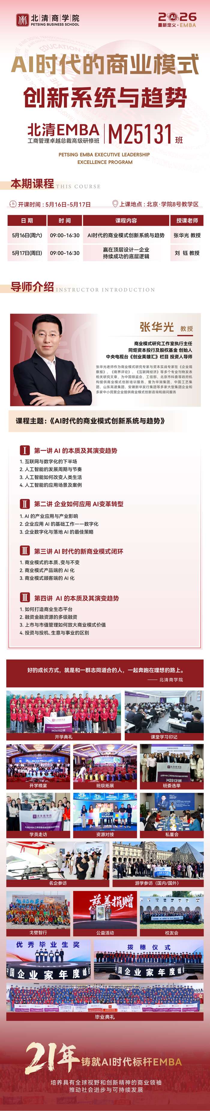 北清商学院 | 张华光+刘钰 | EMBA总裁班M25131 | AI商业模式+顶层设计 | 5月16-17日